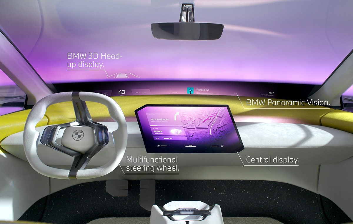 Las actuales pantallas de visualización frontal (HUD) de los autos ofrecen un campo de visión limitado, pero BMW está revolucionando esta tecnología con su nuevo diseño. Al ampliar el campo de visión, el HUD de BMW crea una experiencia más envolvente y ofrece información crítica para la conducción directamente en la línea de visión del conductor, lo que le permite mantener los ojos en la carretera.