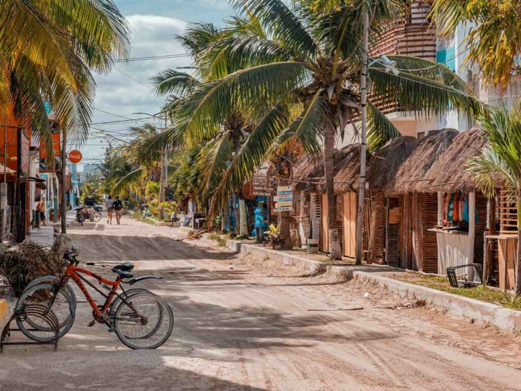 Es fácil entender por qué Isla Holbox fue el paraíso de los mochileros durante tanto tiempo. Las calles arenosas están bordeadas de edificios con techos de paja salpicados de colores eléctricos como verde neón, rosa, turquesa y amarillo canario. Visitantes y residentes se mueven en carritos de golf, vehículos todoterreno y bicicletas todoterreno, mientras la rítmica música isleña sale de las cantinas al aire libre.