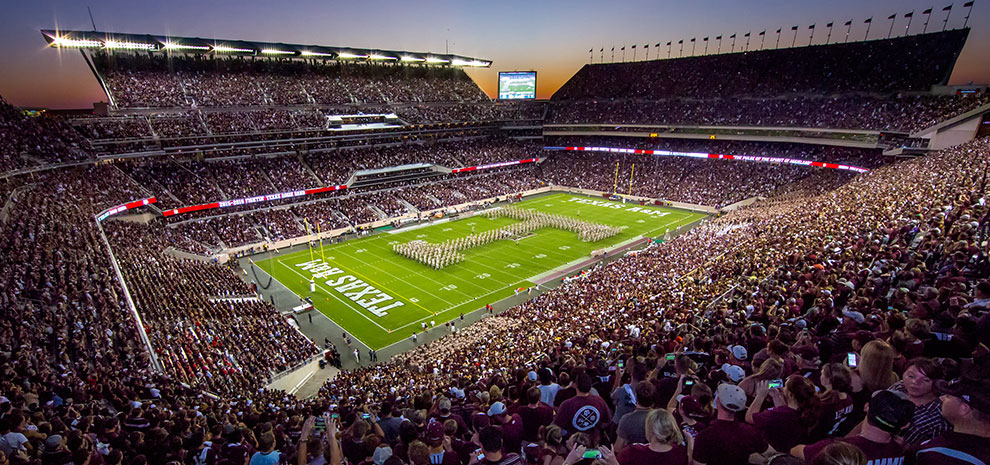 El fútbol americano es un deporte básico en Texas, por lo que no es de extrañar que la Universidad A&M de Texas, en College Station, albergue el cuarto estadio más grande de EE.UU. Aquí, hasta 102.733 aficionados pueden presenciar un partido de fútbol americano de los Aggies, una cifra significativamente superior a la capacidad original del 1929, de sólo 32.000 espectadores.