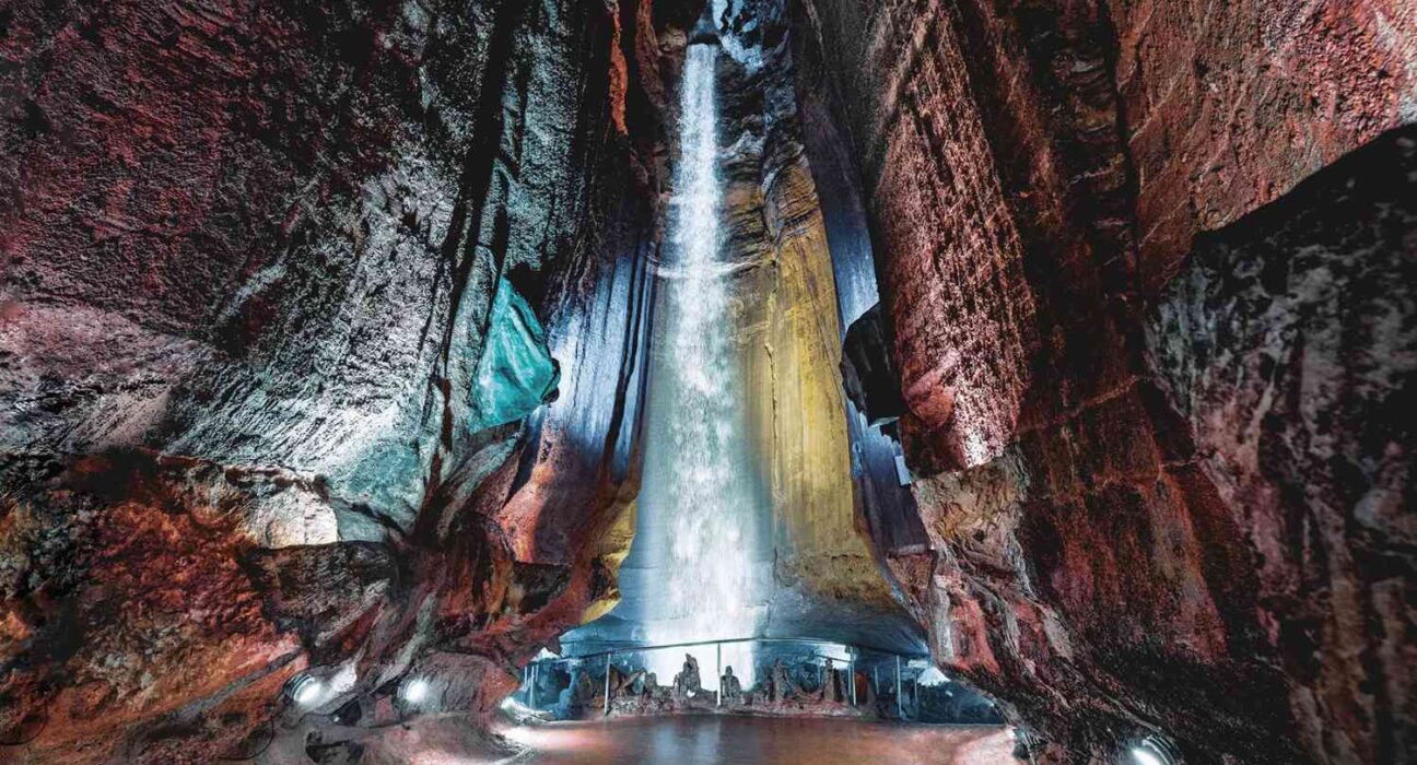 Ruby Falls, la cascada subterránea más alta y profunda de Estados Unidos abierta al público, se encuentra dentro de Lookout Mountain, una de las principales atracciones de la zona.