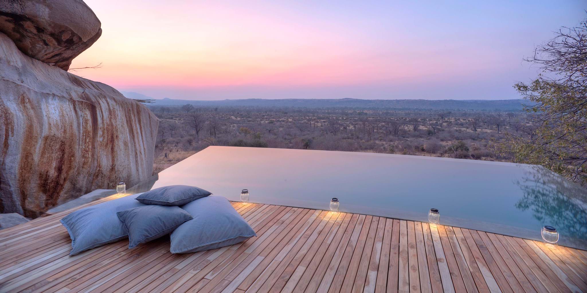 Más allá de los fascinantes safaris y el sublime alojamiento, lo mejor es sumergirse en los paisajes de rocas y baobabs desde la comodidad de la piscina infinita mientras se espía la acción de los animales.
