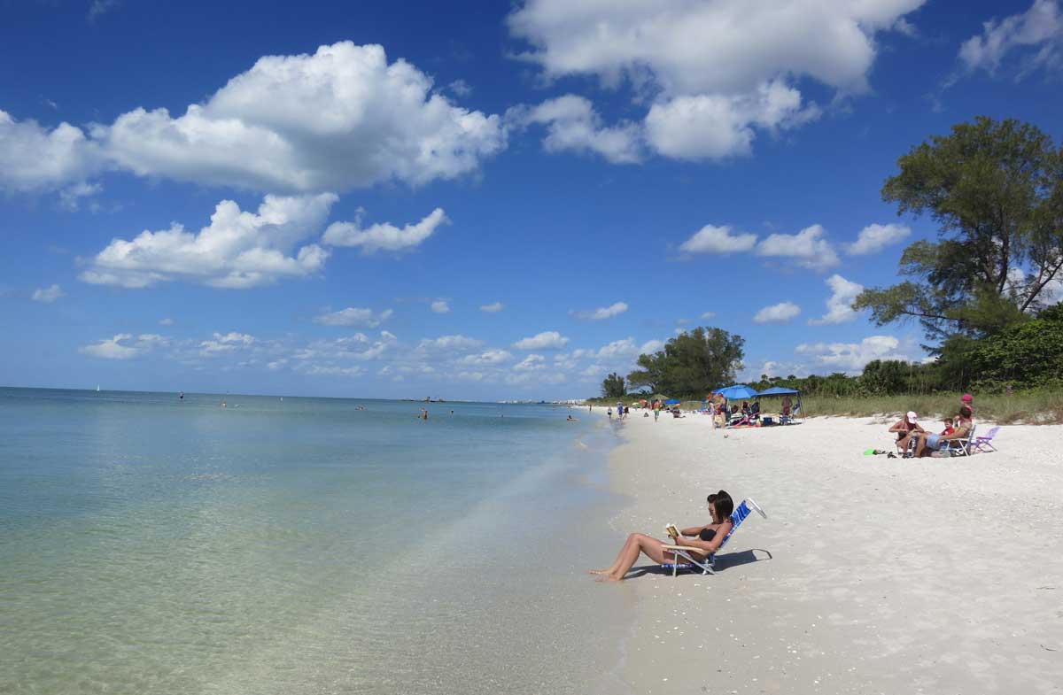 Esta playa de la isla barrera cuenta con hermosas playas de arena blanca y aguas cristalinas del Golfo. Entre las actividades que se pueden practicar están la natación, el buceo con tubo, el paddleboarding, el marisqueo y la pesca. Los pinos proporcionan una agradable sombra.