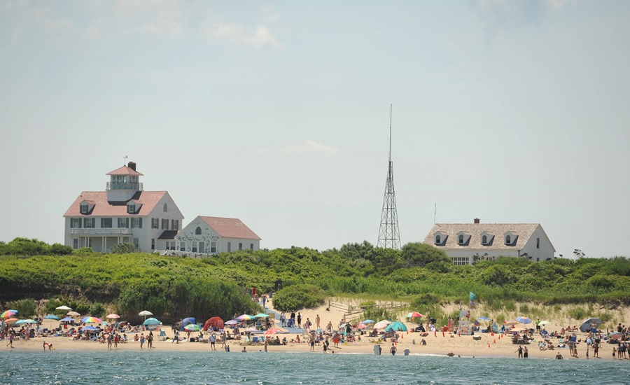 Accesible en bicicleta desde el Centro de Visitantes de Salt Pond o en autobús lanzadera, Coast Guard Beach ofrece una vista espectacular del sistema de barreras de Nauset Spit y de la bahía. El pintoresco y antiguo puesto de guardacostas aún se alza sobre los farallones glaciares. Durante el verano, los bañistas se dan rápidos y refrescantes chapuzones en el océano, ya que el agua está fría. Nade siempre cerca de un socorrista y haga caso de las banderas rojas con imágenes de tiburones si las hay.