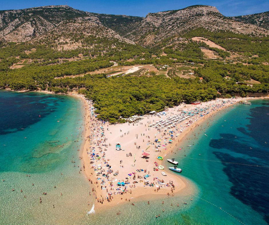 Zlatni Rat, cuyo nombre significa literalmente Cuerno de Oro, es única en el Mediterráneo por una razón que no tiene equivalente en ninguna otra playa del mundo: su forma cambia. La punta de la lengua de arena que se adentra en el mar Adriático se mueve y modifica su dirección dependiendo de las corrientes marinas y el viento, haciendo que ninguna foto sea exactamente igual a la siguiente y que cada visita ofrezca una playa ligeramente distinta a la anterior.