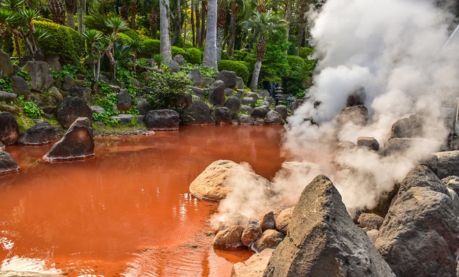 Enclavado en el pintoresco paraíso termal de Beppu, en Japón, Chinoike Jigoku, o el «Infierno del Estanque de Sangre», se erige como una cautivadora maravilla geológica. Célebre por sus sorprendentes aguas de color carmesí, la coloración única del manantial se atribuye al alto contenido en hierro de su composición rica en minerales.