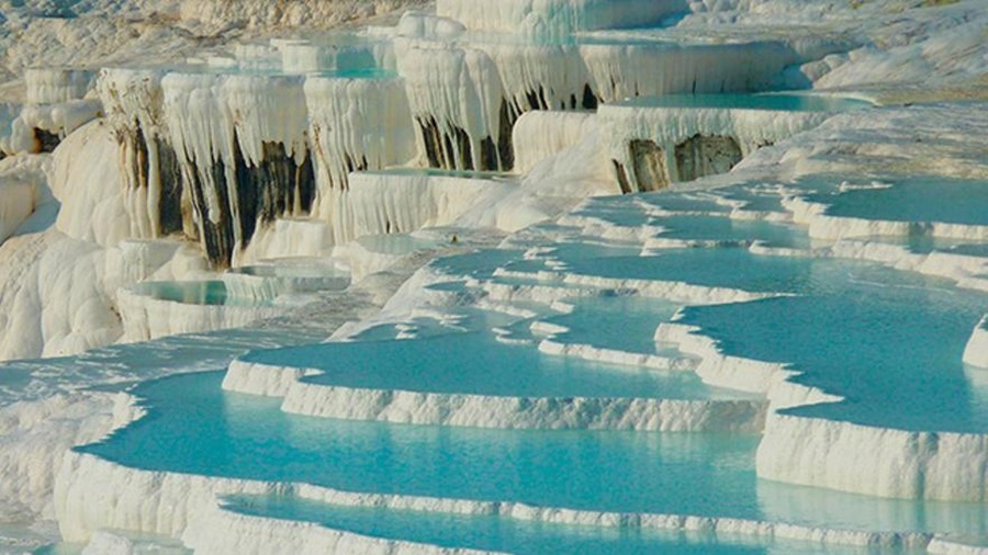 Reconocida como Patrimonio de la Humanidad por la UNESCO, Pamukkale comparte su distinción con la cercana y antigua ciudad balneario de Hierápolis, donde las prácticas de hidroterapia acompañaban antaño a las ceremonias religiosas.