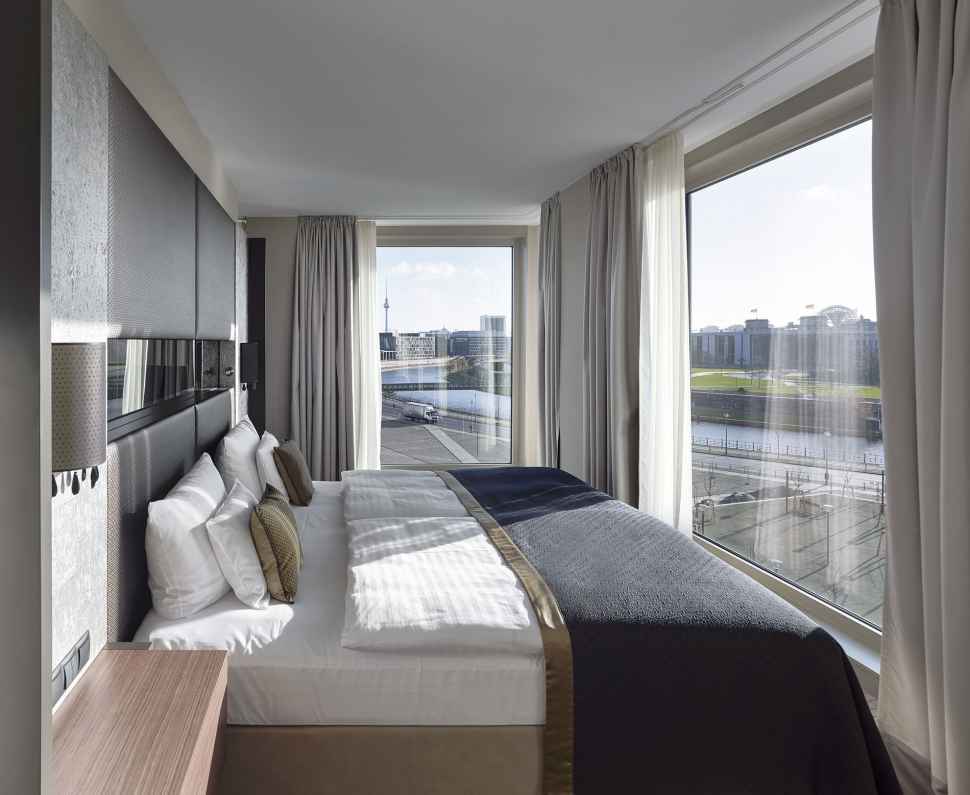 Steigenberger Hotel Am Kanzleramt: Este hotel de cinco estrellas, situado junto al edificio del Reichstag y la Cancillería Federal, combina un diseño elegante con una ubicación privilegiada en el centro de Berlín. Sus amplias habitaciones y suites ofrecen un ambiente tranquilo y lujoso, ideal para viajeros de negocios y turistas por igual.