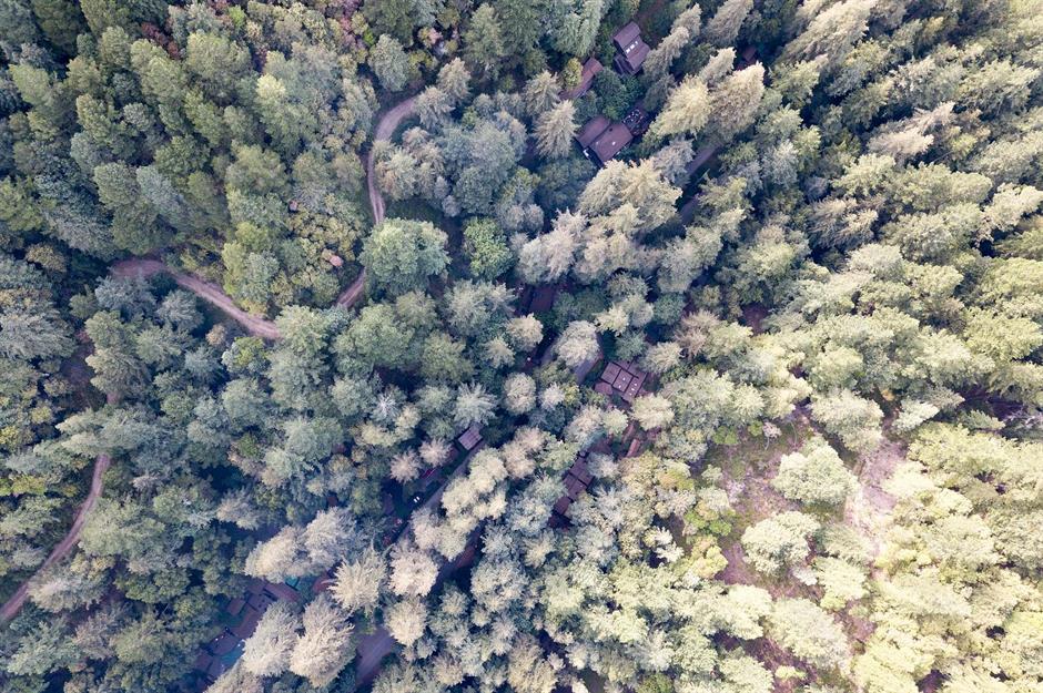 El restringido camping de 2.700 acres alberga una especie de campamento de verano del Bohemian Club, una organización privada con sede en San Francisco que ha contado entre sus miembros a numerosos presidentes y famosos estadounidenses, como Ronald Reagan, George W. Bush y Clint Eastwood. La sociedad secreta se fundó en el 1872 y sus miembros, sólo varones, se reúnen anualmente en el camping, que aparece en esta foto aérea.