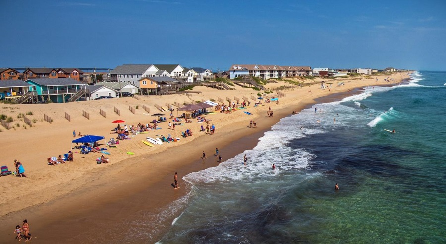 - Entretenimiento y Familias: Las playas son amplias y menos concurridas, perfectas para construir castillos de arena, volar cometas o simplemente correr libremente. Las actividades incluyen escalar faros históricos (como Cape Hatteras Lighthouse), visitar el Wright Brothers National Memorial (donde voló el primer avión), buscar cangrejos fantasma por la noche, o incluso avistar los caballos salvajes de Corolla. El surf es popular, pero también hay zonas tranquilas para nadar.
