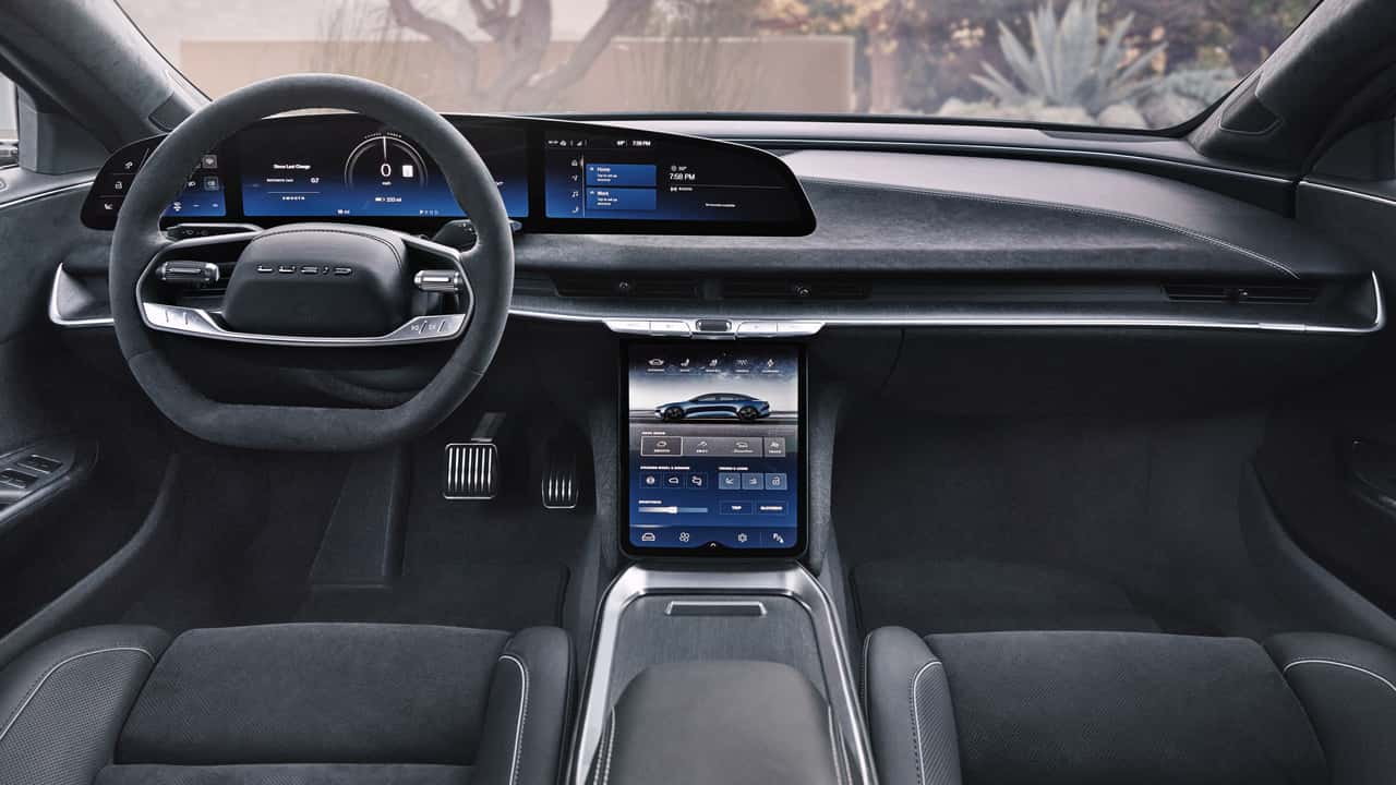 Si esperabas que el Lucid Air del 2024 recibiera las mismas mejoras interiores y tecnológicas que el Lucid Gravity, te llevarás una decepción. El nuevo hardware, incluidas las pantallas táctiles envolventes, la pantalla táctil de apoyo orientada al retrato y el volante táctil, no dará el salto todavía.